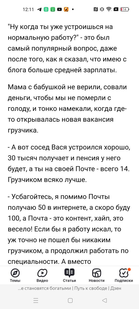 Написал сегодня про блогера Пантелейкина. Фигура, как не крути. Он продал дом в СНТ, фактически деревенский дом с участком. И рад. Смысла не увидел, хотя ему буллинг не устраивали местные чиновники, как мне. Скоро буду и я наверно продавать. Выхода нет. Думал долго писать или нет ещё одну статью на эту тему. Видео разговора с главой сельсовета ждёт своего часа. Но увидел в Дзене соловья капитализма. Читает книги из фикс прайса Достоевского и Лондона. Капитализм это здорово. И не смог промолчать. С его любовью к капитализму надо, что то делать и решил надо писать. Скажите постоянно о нем. Семин надоел всем, хватит уже. Согласен, его много. Но я не виноват. Не могу от него оторваться. Нет, я не о его творчестве. Оно не нравится. Заблокировать не могу. Постоянно его крутят в моей ленте. Опять статья, гимн капитализму. Лежу мол, и бабосики на счет идут сами. Мне скажу честно Максим, бабосики тяжело достаются. Дзен только рубль за четыре дня дает. Почему? Пишу плохо. Может быть. Но скоре