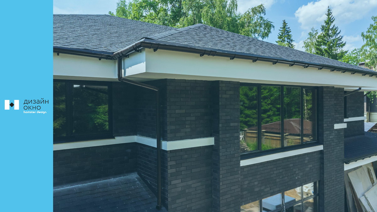 Компания «Дизайн-Окно» подчеркнула «изюминку» данного дома, смонтировав все окна и входные группы из итальянского алюминиевого профиля NewTec SY 68 в подходящем тёмном цвете.