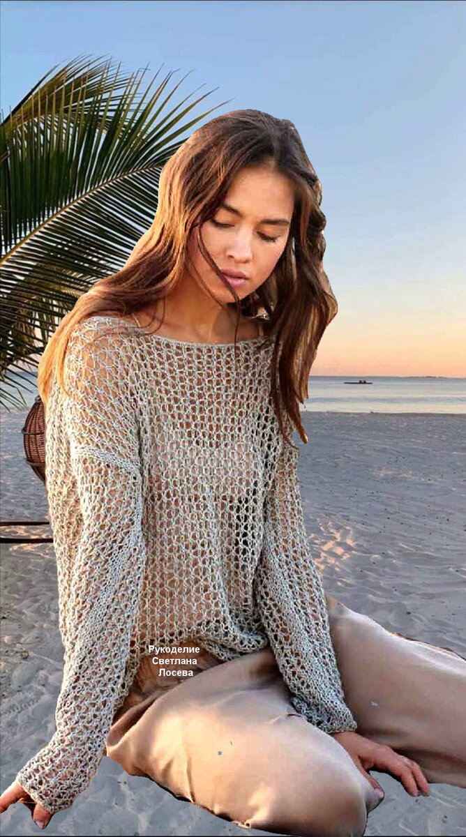 Стильный джемпер на лето узорами с вытянутыми петлями и сеточкой смотрите как вязать: https://dzen.ru/video/watch/6285ece687757c1460efd477