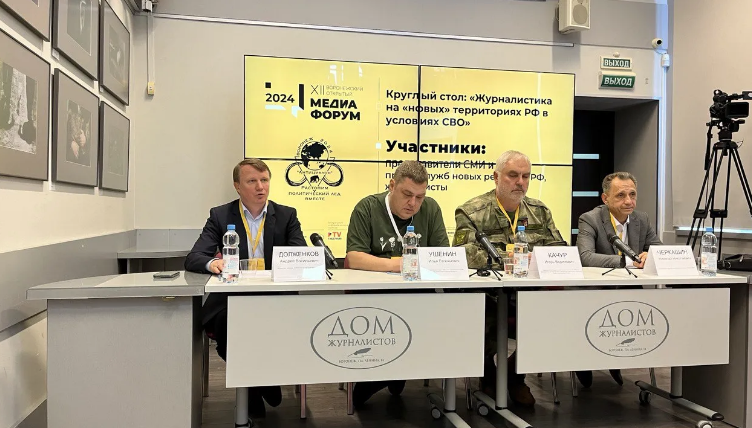 Большое внимание в этот раз было уделено вопросам освещения военных конфликтов, работе военных корреспондентов. В медиафоруме приняли участие представители журналистского сообщества с присоединенных российских территорий. В формате круглого стола на одной из площадок мероприятия – в Доме журналистов – гости рассказали о специфике работы в условиях СВО.