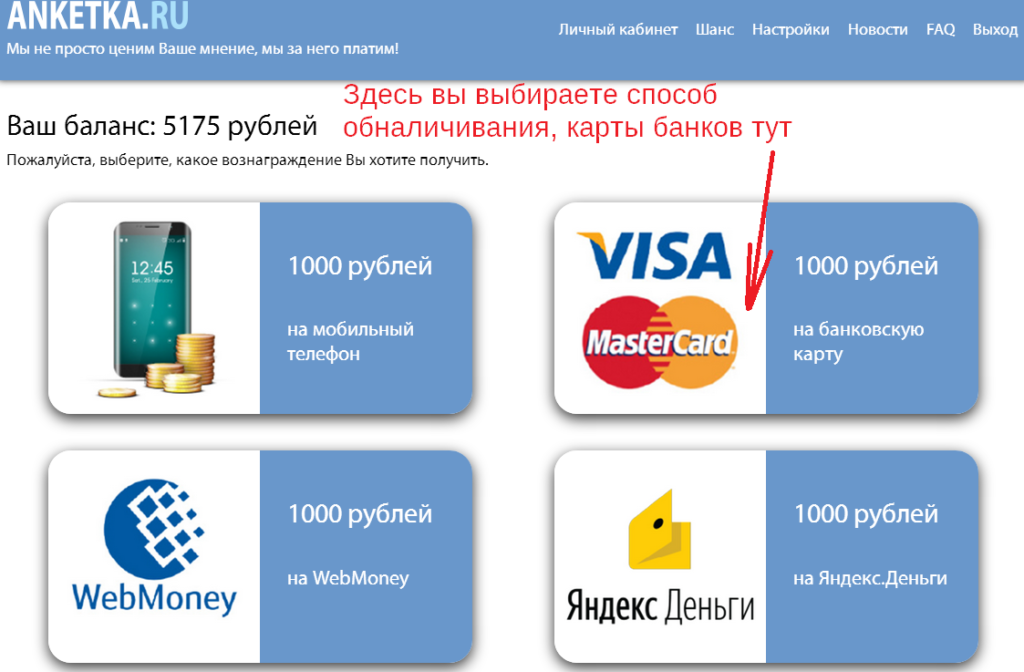 Анкетка.ру: честный заработок и интересные опросы Анкетка.ру — это современный и серьёзный опросник, который предлагает возможность дополнительного заработка и участия в интересных опросах. Регистрация на сайте проста и занимает всего несколько минут. За каждый заполненный блок анкеты пользователи получают вознаграждение в размере 10 рублей. Опросы на Анкетка.ру приходят с разной регулярностью, иногда по несколько в день, иногда реже. Это зависит от индивидуальных параметров пользователя. Если вы не подходите для прохождения опроса, вам начисляется минимальная сумма за потраченное время (5 рублей). Вывод средств возможен с минимальной суммой 1000 рублей. Существует несколько вариантов вывода: на телефон, банковскую карту, QIWI-кошелёк или в фонд помощи. Также на сайте есть отдельная платформа «Моё мнение», где оплата производится только баллами. За 25 дней работы на Анкетка.ру я смог заработать 800 рублей. Это неплохой результат, учитывая, что опросы приходят не каждый день.https://www