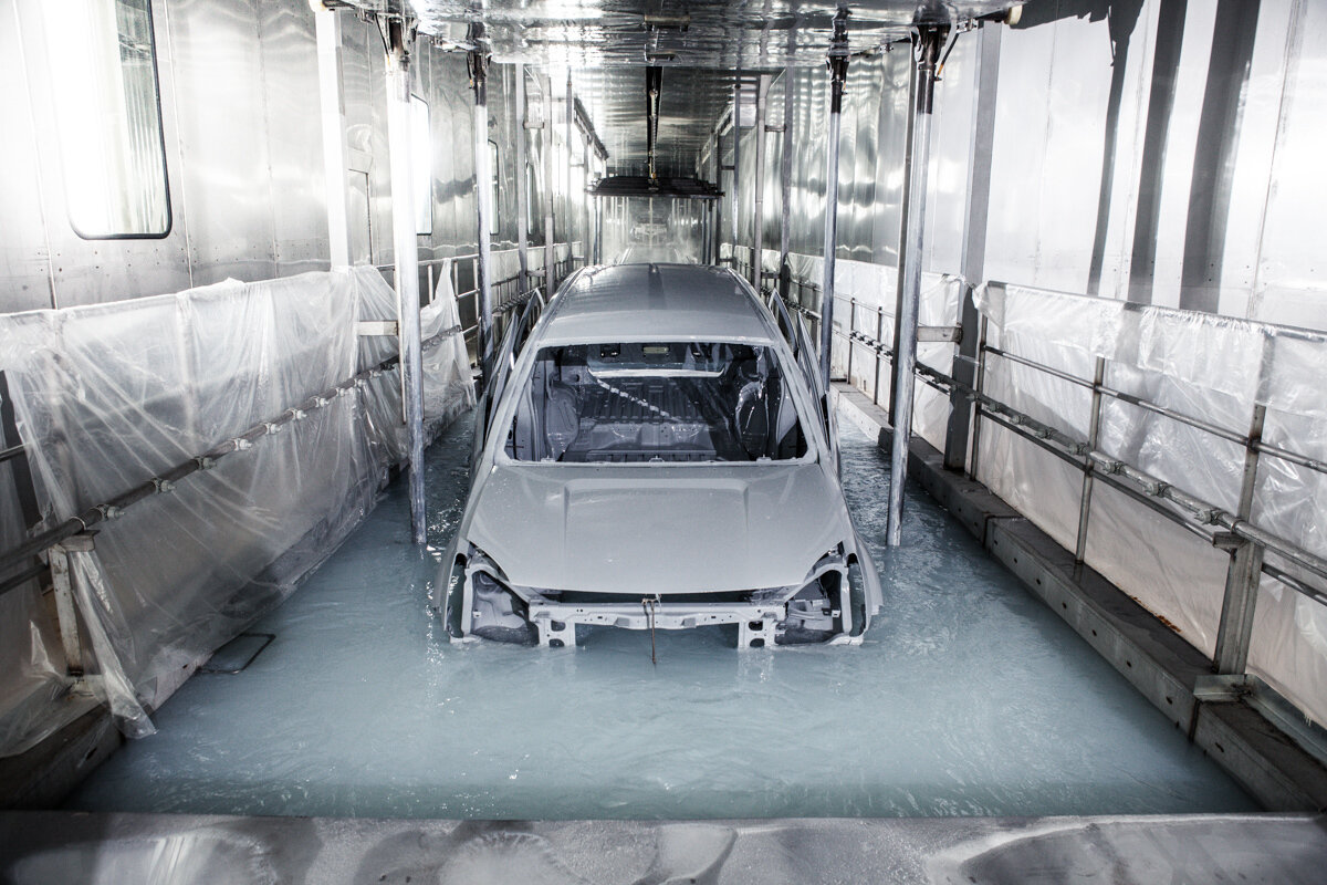 - Кузов автомобиля «купают» в ванне с цинксодержащим электролитом, где под воздействием электрического тока цинк оседает на поверхности кузова автомобиля.