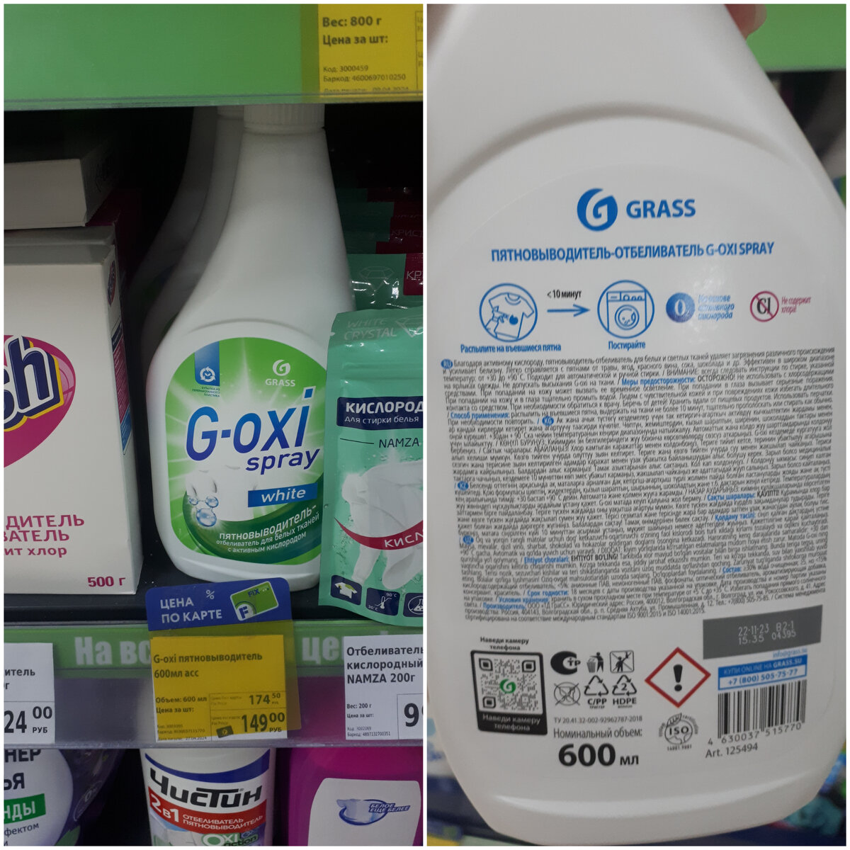 Всем привет. Меня зовут Наталья. Я очень рада видеть вас на своём канале. Сегодня мы с вами прогуляемся по магазину Фикс Прайс, который находится по адресу: город Йошкар-Ола, улица Воинов Интернационалистов, дом 25в. В этот раз я вам покажу очень много красивых новинок. Так что устраивайтесь поудобнее. Желаю Всем приятного времяпровождения. Пятновыводитель-отбеливатель G-OXI SPRAY стоимостью 174 рубля 50 копеек. Цена по карте лояльности составляет 149 рублей. Объём средства 600 мл. Страна изготовления Россия. Данный пятновыводитель-отбеливатель подходит для белых и светлых тканей. Благодаря активному кислороду, он удаляет загрязнения различного происхождения и усиливает белизну. Средство легко справляется с пятнами от травы, ягод, красного вина, сока, шоколада и др. Оно эффективно в широком диапазоне температур от +30°С до +90°С и подходит для автоматической и ручной стирки. Кислородный отбеливатель NAMZA стоимостью 99 рублей. Масса нетто 200 грамм. Страна изготовления Китай. Данный о