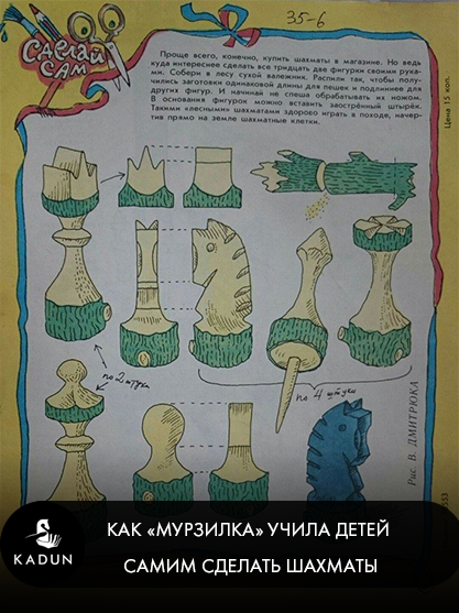 100 лет назад, 16 мая 1924 года в Москве тиражом 20 000 экземпляров вышел первый номер детского журнала «Мурзилка». Название журнал получил по кличке щенка, про которого в первом номере был опубликован рассказ. В 2011 году журнал был занесён в Книгу рекордов Гиннесса как издание для детей с самым длительным сроком существования. Печатались в «Мурзилке» и шахматные истории (например, «Как обыграть папу в шахматы»), несложные задачки, шахматные кроссворды и даже шахматные стишки. У нас самый большой интерес вызвала инструкция, как ребенку сделать шахматы своими руками. Пока дети осваивают азы профессии резчика по дереву, родители могут довериться настоящим мастерам своего дела. В салоне KADUN можно приобрести авторские шахматы ручной работы, выполненные по оригинальному дизайну из древесины ценных пород. Картинка: literatort.ru #KADUN #Kadunchess #шахматы