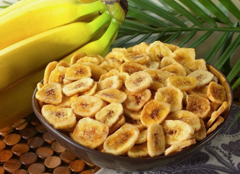 Бананы необходимо очистить от шкурки, после чего необходимо тонко нарезать. Нарезанные бананы уложить на противень, застеленный бумагой для выпечки. Смазать при помощи кисточки кружки бананов оливковым маслом.