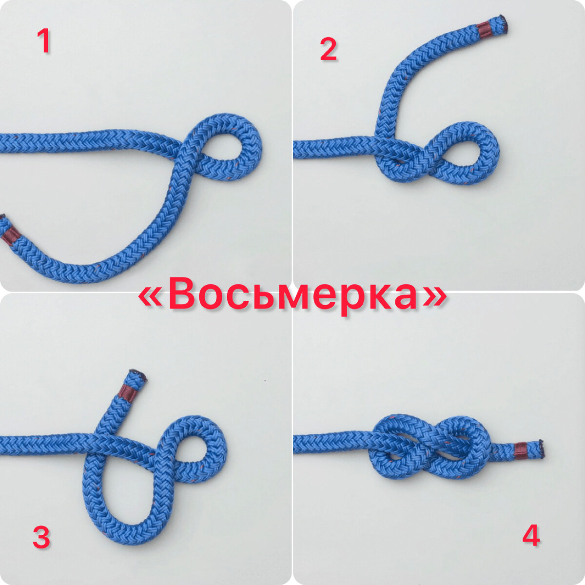 1️⃣Первый узел - «восьмерка» очень простой и напоминает цифру «8». Его завязывают на свободных концах шкотов, фалов, оттяжек и пр., чтобы свободный конец, например фала, не «ушёл» внутрь мачты.