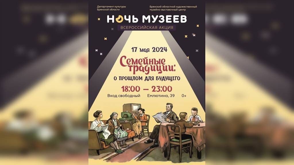Культурная акция, объявленная Министерством культуры России, пройдёт 17 мая с 18:00 до 23:00 часов в брянском областном художественном музейно-выставочном центре. Об этом сообщает региональный департамент культуры. Тема Ночи музеев выбрана неслучайно, ведь 2024 год в России объявлен Годом семьи и посвящен сохранению традиционных семейных ценностей. Любовь к Отчизне, к родным и близким, бережное отношение к подрастающему поколению – эти традиции бережно хранятся в каждой российской семье и неразрывной нитью связывают прошлые, настоящие и будущие поколения. В рамках музейной ночи в залах Брянского областного художественного музейно-выставочного центра расскажут о самых дорогих семейных традициях, олицетворяющих идущий из глубин тысячелетий опыт предков и составляющих основу духовных ценностей нашего народа. С программой акции можно ознакомиться на сайте музея и департамента культуры Брянской области. Возрастное ограничение: 0+ В Брянске в «Ночь музеев» расскажут о семейных традициях