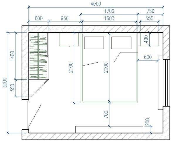 При планировании спальни помните, что это место, где человек отдыхает и восстанавливается. Кровать - сердце спальни. Кровать подбирают в соответствии с размером комнаты, чтоб спальня не выглядела тесной. Важно выделить вокруг кровати достаточно пространства, которое позволит удобно ложиться и вставать. Кровати шириной 80-140 см - односпальные. К двуспальным относятся кровати шириной 160-180 см. Длина стандартной кровати – 200 см. Комфортной высотой считается 55-60 см с учетом ножек и матраса. Выберите кровать высотой 45-50 см, если вы часто сидите на краю кровати. Изголовье кровати должно возвышаться над матрасом минимум на 20 см. Это защитит стену и удержит подушки на месте. Ставьте кровать так, чтобы вдоль ее стены оставался проход шириной не менее 70 см. Для односпальной кровати достаточно одного прохода. Для двуспальной кровати нужен проход с двух сторон. Если вдоль длинной стороны кровати планируете ставить шкаф, проход должен быть шире, чтоб было комфортно подойти и открыть