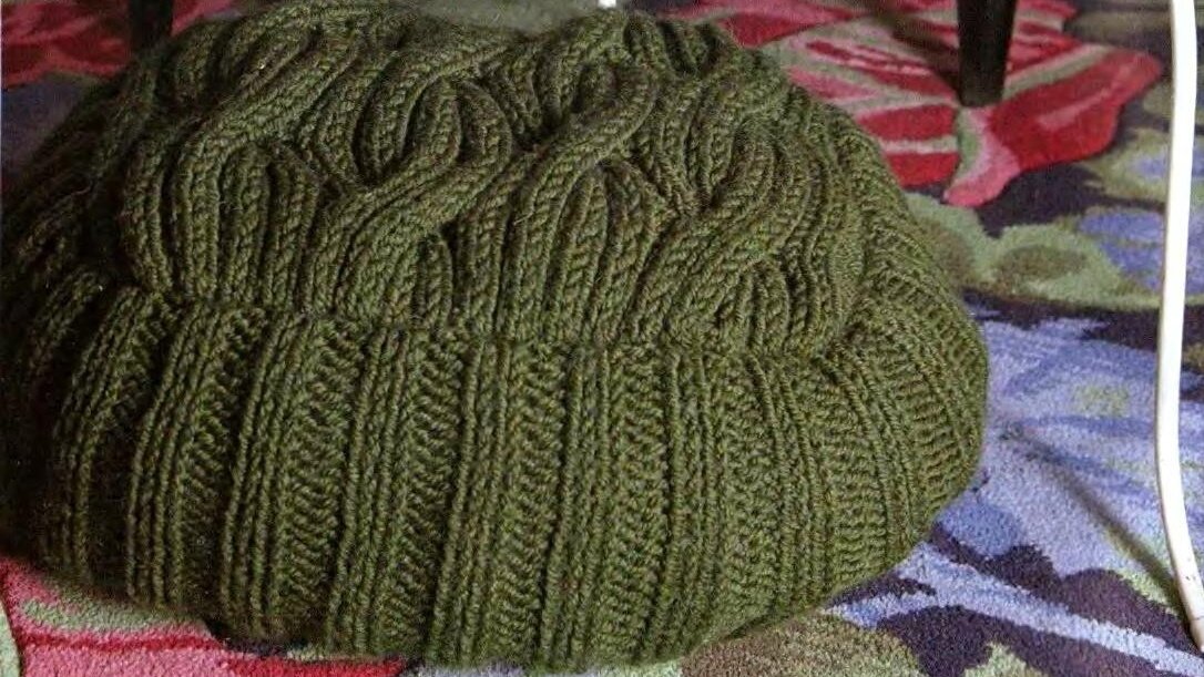 А вот третий вариант пуфика вяжется уже спицами, но тоже смотрится достаточно оригинально. А ещё бонусом дана схема вязания чехла для кашпо.