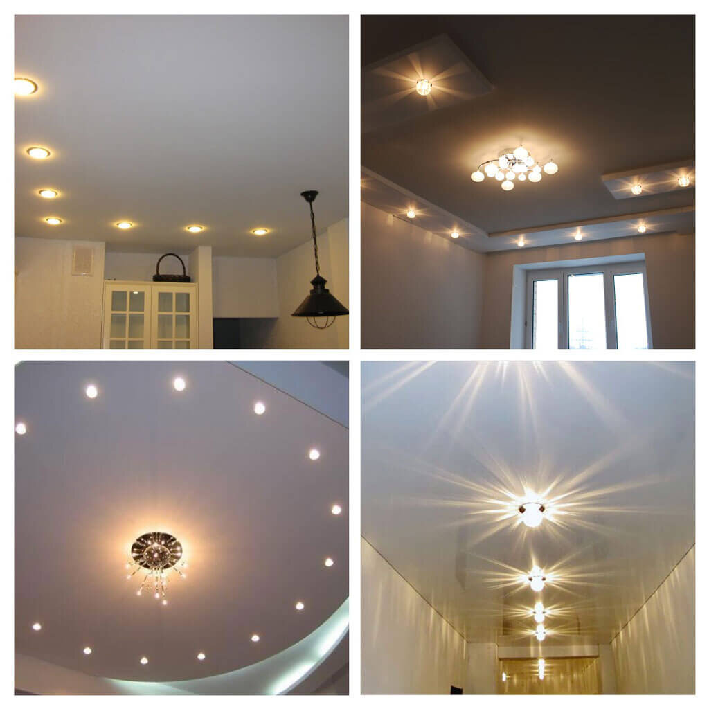 Планирование расположения светильников начинается с выбора источника света. Для натяжных потолков можно использовать следующие типы приборов: