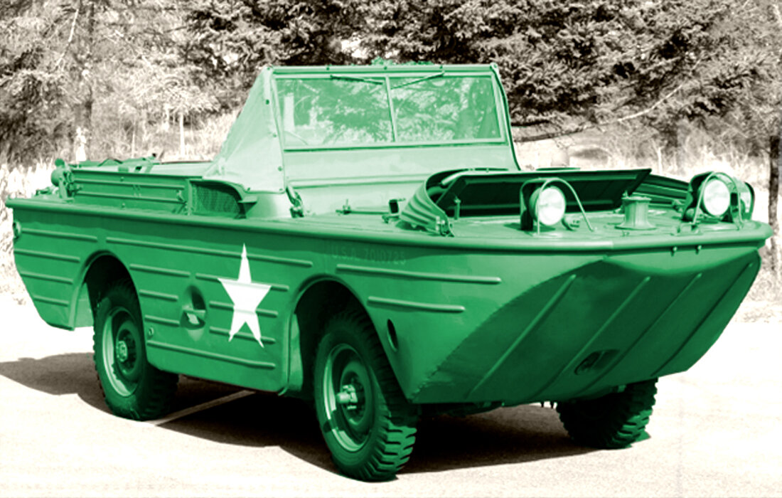 Весной сорок первого концерн «Дженерал Моторс» начал серийное производство амфибии DUKW-353, способной принять на борт взвод пехотинцев или орудие калибром до 105 мм с расчетом и боекомплектом. Она и стала основной десантной машиной армии США. Делились ими штаты с союзниками не очень охотно. Хотя их произвели почти в два раза больше, чем амфибий Форда (21 147 штуку), в Советский Союз попало всего около пяти сотен.