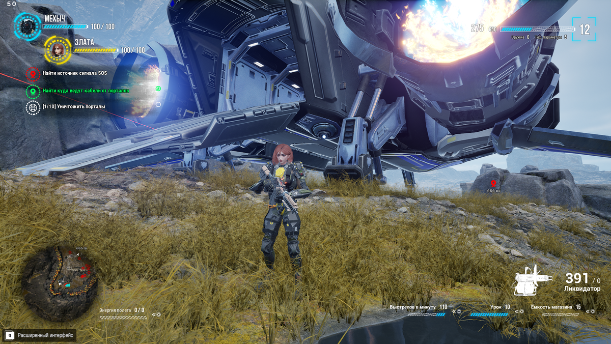 В игре три типа камеры, изометрическая, от третьего и первого лица, по мне они все выглядят годно. Управлять мы будем Мехычом, есть возможность десантироваться и играть за пилота. У Златы всего один автомат с ограниченным запасом патронов, поэтому расстреляв боезапас, рекомендую сесть в кресло пилота, так можно немного подлататься и пополнить обойму. Если мы выбираемся наружу, мех становится верным напарником и помогает в отстреле враждебных аборигенов.