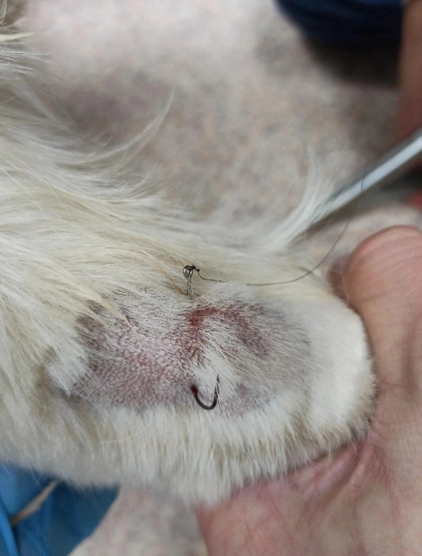 Часто бывает так, что во время игры у животных, они часто "ловятся" на крючок. Особенно склонны к этому молодые особи, которые так и наровятся поиграть и побегать на природе