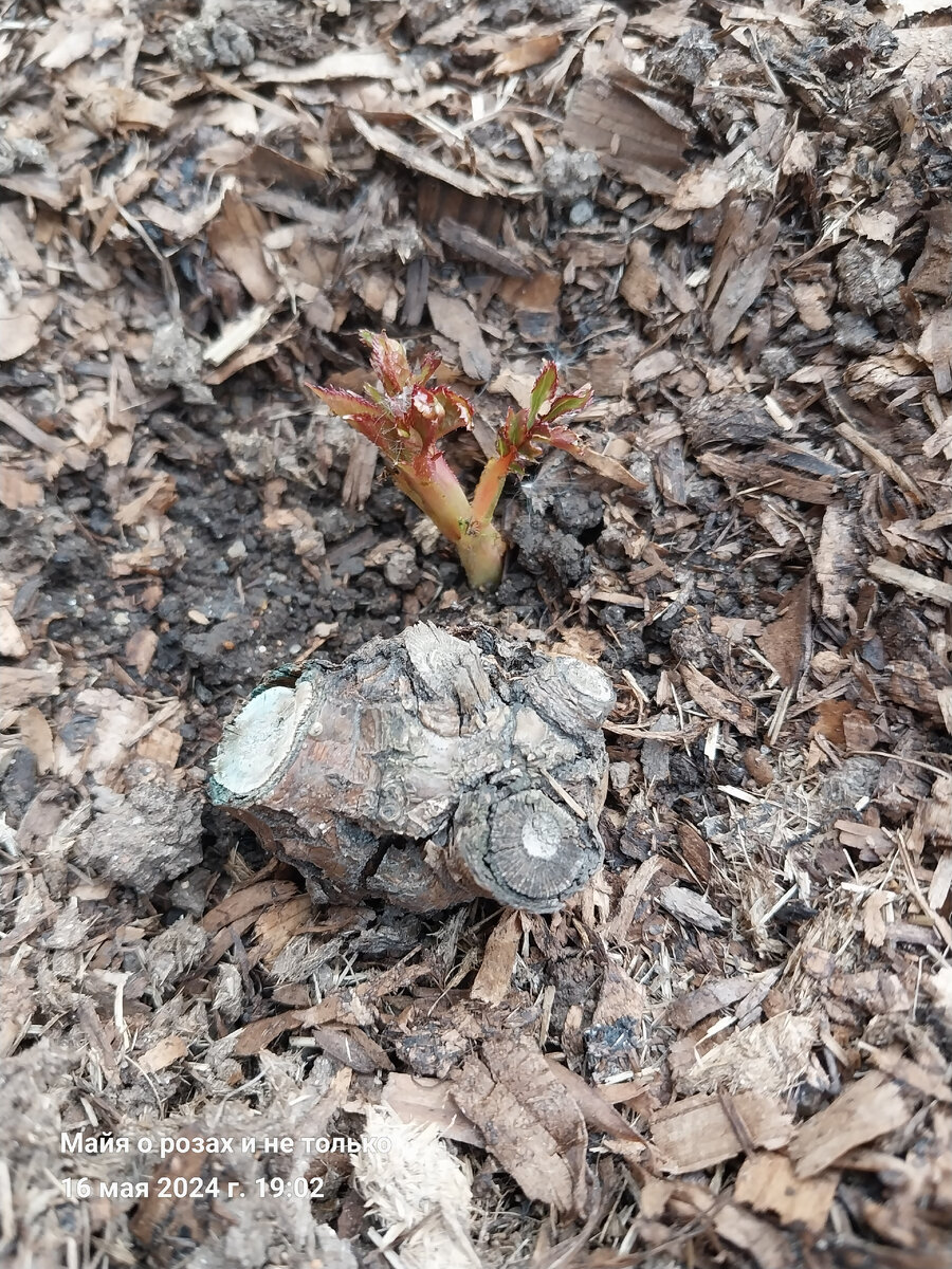 В каком случае не стоит тратить время и ждать роста от свежепосаженных роз? Почему я никогда не стимулирую розы? Ответ на фотографиях. В этом году Подворье впервые продовало странные розы с обрубленными корнями из загадочных российских питомников. Цены демократичные, но качество сомнительное. Как всегда "скупой платит дважды ". Ровно месяц назад эти розы были посажены и длительное время находились в укрытии под спанбондом. Им было не просто тепло, а очень тепло. Даже самые упёртые и безнадёжные пни из старых посадок одумались и стали бороться за жизнь. Вот так выглядела лучшая из трёх роза из Подворья. Прошёл месяц после посадки и этого уже достаточно, чтобы понять жилец она или "до свидания, на выход". Роза из каждой почки выдала короткую розетку и глубоко задумалась. Зовут нашу розу Джульетта. У меня сложилось такое впечатление, что не умеют в наших питомниках прививать английские розы. Возможно, это совпадение, но развиваются они у меня слабо, пышный куст не нарастает, в от
