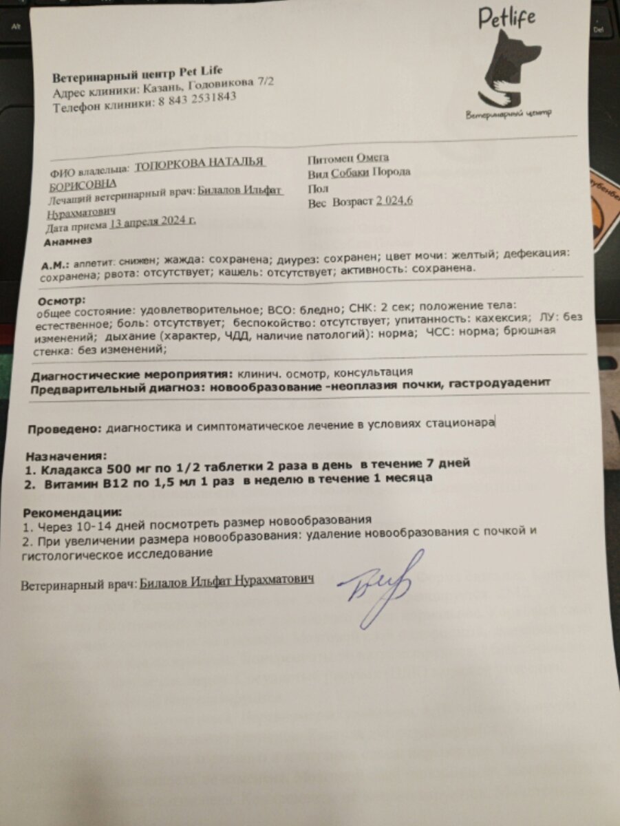 Мы назвали её Омегой, ведь это было имя, которое олицетворяло её силу и выносливость. Обнаружив опухоль, мы приняли решение обратиться за помощью в Казанскую клинику Пэтлайф. Здесь ей предстояла сложная операция, но без неё Омега не смогла бы выжить.