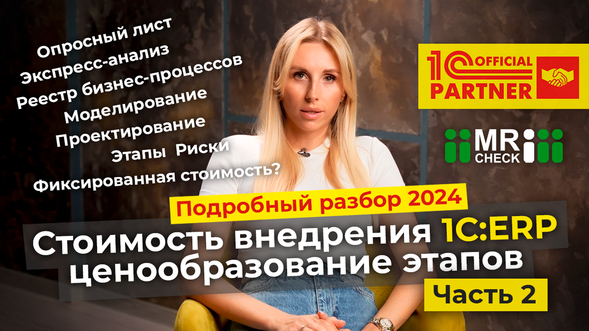 Всем привет, я Инна Ерпулева, компания Мистер Чек и сегодня я продолжу тему стоимости внедрение 1С:ERP.