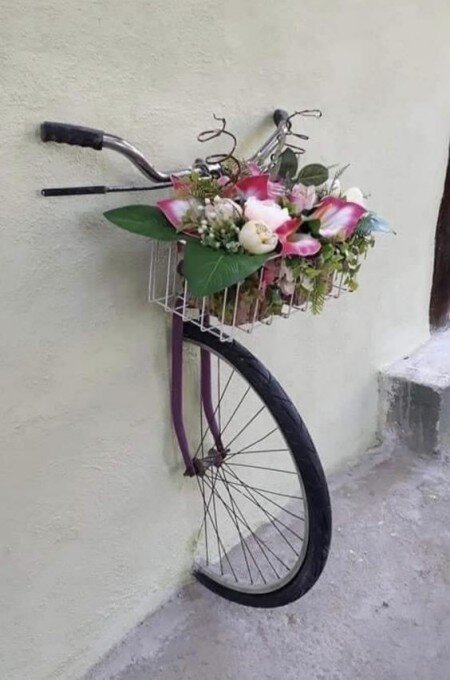 Кто его туда загнал? Это что, кадр из фантастического фильма? Может, там, за стеной, скрывается другая реальность? Велосипедист по ошибке загнал пол-велосипеда в нашу, а сам не решился переехать границу, так и застрял.