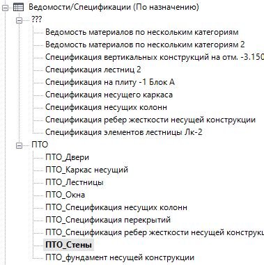 Для удобства работы со Спецификациями в Revitстоит настроить Диспетчер проекта. Это поможет лучше ориентироваться в спецификациях. Например, они могут быть сгруппированы вот так