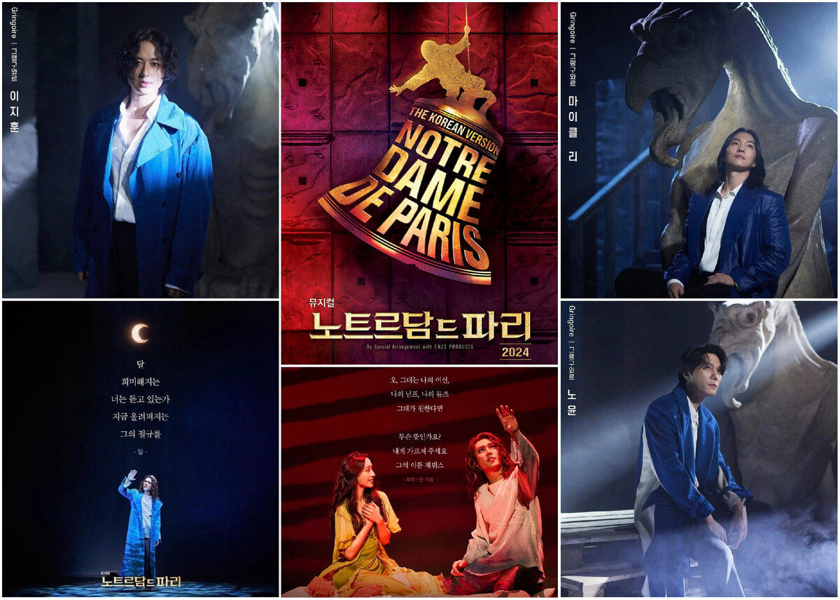 Сразу скажу, что я испытываю зашкаливающе нежные чувства к французской оригинальной версии, которую посмотрела раз 10, а вот с корейской постановкой я никак не могла свыкнуться. Корейский язык не ложился в моей голове на французский, всё было непривычным и чужим. Где мой пронзительно хриплый Гару? Где мой устрашающе голосистый Даниэль Лавуа? Где, в конце концов, мой обаятельный и харизматичный Брюно Пельтье с его мощным голосом? Особенно придирчива я была в отношении исполнителей роли Гренгуара, потому что Брюно Пельтье всегда был и остаётся для меня самым убедительным и идеальным для этой роли. Других я не признавала, а теперь постепенно свыкаюсь и в этом году я сделала шаг, чтобы привыкнуть к корейской музыкальной подаче в "Нотр-Дам де Пари". В этой статье я не планирую сильно углубляться в историю мюзикла, исполнителей ролей и сами арии, а лишь отмечу основное, что откликнулось мне как фанатке этой постановки с 20-летним стажем (даже не верится, что мюзиклу уже столько лет).