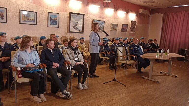 В четверг, 16 мая, в Центральной детской библиотеке города Рязани прошёл заключительный телемост «Боевое братство навек!», который проводился в рамках проекта «Десантное братство». В нём приняли участие начальник управления культуры города Рязани Надежда Майорова, начальник кафедры военно-политической работы в войсках (силах) РВВДКУ, гвардии полковник Тимофей Юдин, а также ветераны ВДВ и Герои России. — Приятно видеть такое большое количество голубых беретов, людей, для которых словосочетание «Боевое братство» является родным. Мы всегда рады видеть вас в стенах нашего родного училища. Мы проведём экскурсии, расскажем, покажем, познакомим с такими прекрасными людьми, как Владислав Головин. У нас есть действительно много ребят, которые совершили подвиги, сейчас они, в стенах училища, передают свой опыт молодому поколению. — сказал Тимофей Юдин. Также к участникам проекта обратилась Надежда Майорова: — Дорогие дети, у нас, когда мы были такие же, как вы, в каждом кабинете висели портреты