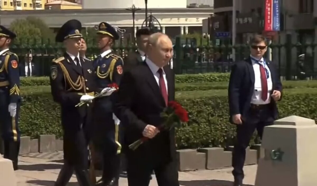 Перед мемориалом выстроилась рота почетного караула родов Вооруженных сил КНР. Второй день государственного визита Президента России Владимира Путина начался с возложения цветов к памятнику советским воинам, погибшим в боях за освобождение Китая.