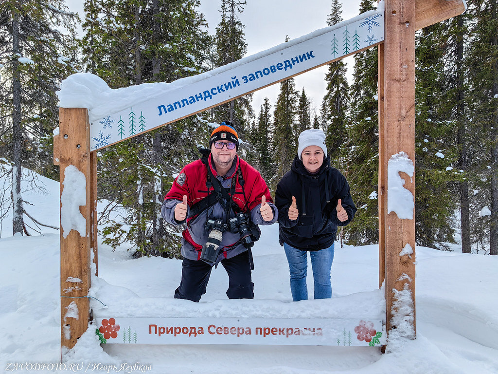 А ещё я посетил Лапландский государственный природный биосферный заповедник в Мурманской области, на западе Кольского полуострова, на берегу озера Имандра. Для большинства Лапландия - сказочная родина Санта-Клауса. На самом деле так называли территорию, на которой издревле жили саамы, или, как их называли на Руси, лопари. Лапландия занимает большую часть Кольского полуострова. А Лапландский заповедник - четвёртый по величине в России и один из самых интересных на Русском Севере. Это прекрасное место, зимой здесь настоящая сказка, времени, честно, у меня было немного, поэтому гуляя даже по самому простому детскому маршруту, старался по полной погрузиться, а может даже сразу и влюбиться в это место. А ещё здесь расположена усадьба Деда Мороза. Важно отметить, что Кольская ГМК и тут при деле. Например, при поддержке компании были созданы несколько экологических троп, в том числе первая детская экотропа «Лесная почемучка», начато строительство нескольких гостевых домов, а также подготовлены и изданы книги об основателях заповедника. В настоящий момент ведется работа по оборудованию саамского музея.