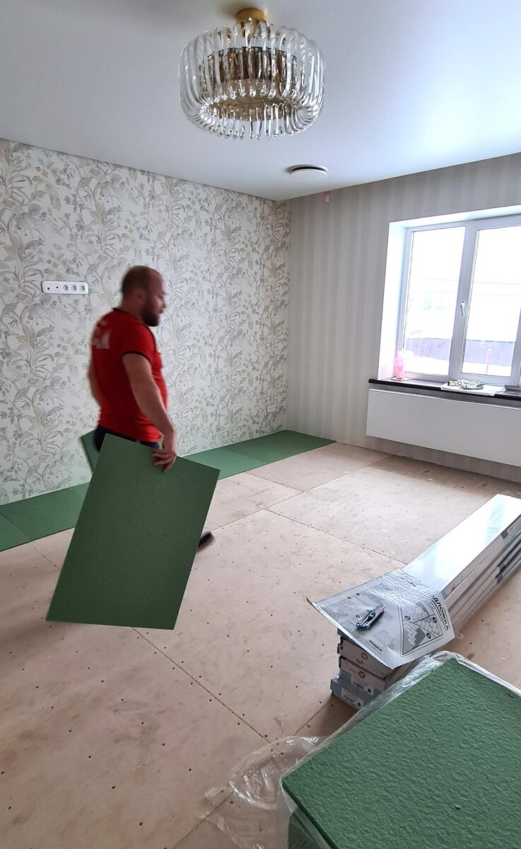 С таким вопросом к нам обратился Михаил В. из Троицка: Как можно быстро и качественно выровнять базу под ламинат? Купили квартиру, но под старым ламинатом оказалась очень неровная стяжка. Выравнивать залитием стяжки не вариант - будет долго сохнуть. Отвечаем Рекомендуем постелить на черновой пол фанеру (на обрешетку), а уже на фанеру - подложку и ламинат. Таким образом, Вы не только быстро создадите абсолютно сухую и ровную базу под ламинат, но также увеличите звуко- и теплоизоляцию всего пола. В данном случае использована хвойная подложка толщиной не 3 мм, как обычно, а 5,5 мм, что позволяет сделать пол еще более изолирующим. Это плотная и стабильная подложка, которая идеально ложится на фанеру. Если же неровности не превышают 2 мм, можно использовать выравнивающую композитную подложку Tuplex. У этой подложки две стороны, одна из которых паропроницаемая, другая - влагоизолирующая, прослойкой между ними служат шарики пенопласта: именно они компенсируют недостатки базового пола. Обраща