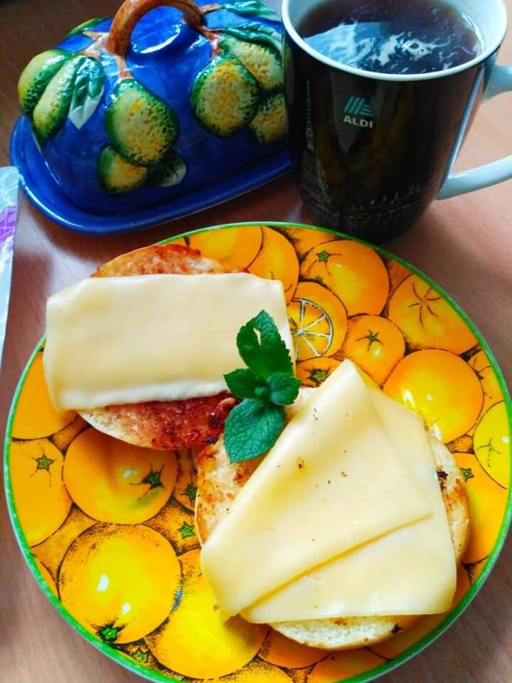 Булочка с сыром. Сладуны счастливы. Они съели огроменные порции гречки на бульоне, с курицей, а на десерт получили любимое - булочку с маслом и сыром. И пусть это крохотный кусочек, но это прекрасный и вкусный десерт) А раньше я не любила чай с мятой. Да и сейчас - не особо люблю. Хотя сам запах мяты, ее внешний вид, мне невероятно приятен и напоминает детство. Каждое лето я проводила в Приморском, что под Феодосией, у Мисюськи и Васюты. Жили они на первом этаже, в доме, который был невероятно удобно расположен. Рядом все магазины, семь минут до моря, зеленый двор. Палисадник под окном был полон мятой, она колосилась огромными кустами и мне доверяли срезать ее на чай. А, собственно, про булочку. Булочка для гамбургера, разрезать вдоль и обжарить с двух сторон, на сливочном масле. Выложить сверху скибку сыра и немного потомить на небольшом огне, чтобы сыр немного расплавился. Булочка, с ароматом и вкусом сливочного масла, с хрустящей корочкой, прекрасно подойдет к чашке горячего, черно