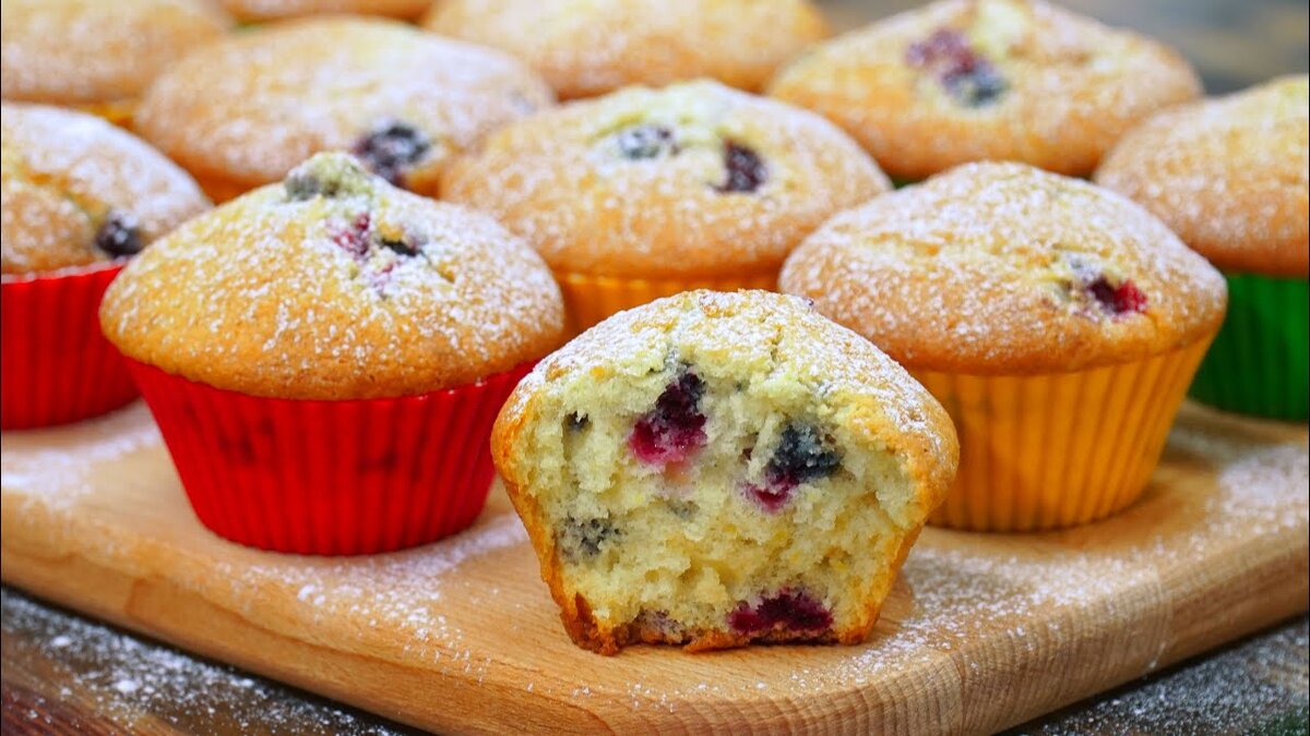1) Лимонные маффины с голубикой. Ингредиенты: Тесто