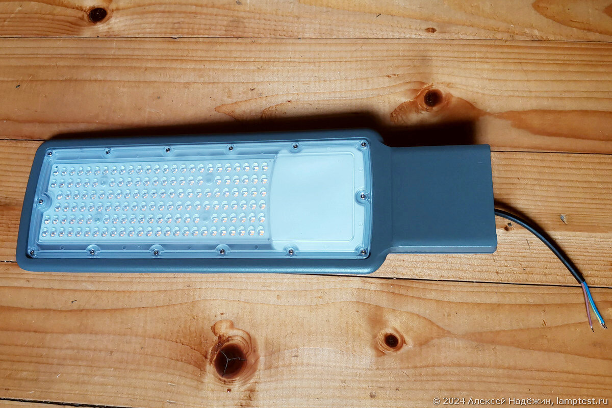 Меня попросили подобрать светодиодные светильники для фонарей в СНТ со стоимостью не более 2000 рублей. Посмотрев разные варианты, я выбрал даже более дешёвый светильник с гарантией 2 года, но, внимательно изучив его, понял, что без переделки он вряд ли долго проживёт. Светильник Foton Lighting (не путать с брендом "Фотон") FL-LED Street 100W я купил в Озоне за 1590 рублей, а сейчас он стоит ещё дешевле - 1256 руб. Одной из причин, почему я выбрал именно его, был теплый свет 2700К (теплый свет на улице смотрится очень приятно и уютно, но, к сожалению, большинство таких светильников выпускается с "мёртвым" холодным светом 6500К). Первым делом я измерил потребляемую мощность. При включении светильник потребляет 113 Вт, через 30 минут мощность снижается до 105 Вт. Температура корпуса через 30 минут достигла 94 градусов. Это очень много. У светильника 144 линзованных светодиода. В подавляющем большинстве ламп и светильников используются светодиоды 0.5 Вт или 1 Вт. Судя по всему, в светильн