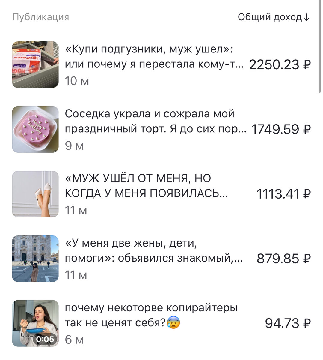 Год назад я завела блог. Цели заработать не было. Хотела просто рассказывать о копирайтинге и набирать аудиторию на курсы. В итоге, «Дзен» резко изменил правила и начал платить больше. А за некоторые мои тексты мне заплатили, смотрите ниже 👇🏻 Думаю, достаточно хорошая оплата. Но я не отличаюсь регулярностью — пишу редко, так как повторюсь, цели зарабатывать у меня не было. Но сегодня у меня возник вопрос: ВОТ ЕСЛИ ВЫ КОПИРАЙТЕР — какой смысл вам идти на биржу, получать за тексты 100-200₽, если можно начать работать в «Дзене» и получать в 10 раз больше? Вы же не мазохисты? Конечно, можно найти нормальную работу, что делают, собственно, спецы и получают за тексты по 3000₽ (мои выпускники всегда так получают последнее время). Но если у вас сейчас нет возможности идти на курс, то начните с «Дзена». Тут платят реально нормально. Экспертам вообще, в первую очередь, нужно идти не на курсы, «как вести блог», а учиться писать тексты. Потому что — ваше лицо (кроме фотографий) — мысли, которые