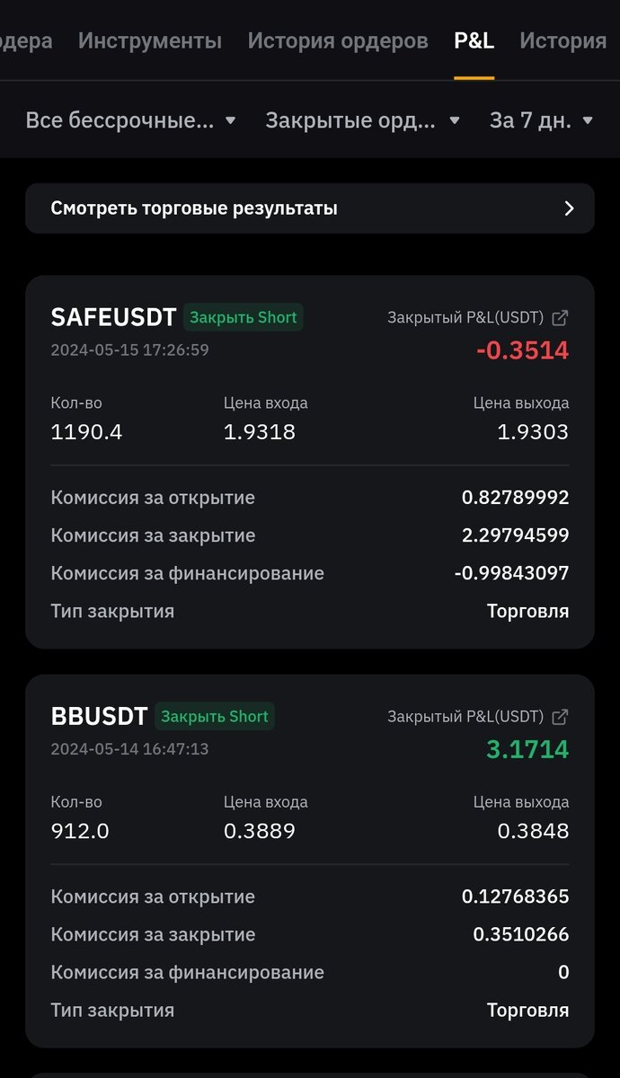 Отчёт за несколько дней которые я не скидывал. Вчера только обрадывался завершению 30 дневного цикла максимально положительного Но не когда небыло и вот опять. Всё шло отлично 🤣 но черт меня дёрнул залететь в лонг. По первому ордеру закрылся нормально. Выставил ордер ждал лёгкого снижения чтоб опять сорвать пару монет и монета начала дампить и схватил свой первый жирный минус. До 2 часов ночи ждал отката усреднился И по этому не мог нормально лечь Спать . Был готов закрыть в-40 но не давало такой возможности. Очень рано надо было вставать на работу. По этому принял решения выставить стопы. Выставил в -175 $ И плюс 5 потому что могло выбить по ликвидации И сделал всё правильно Ночью выбило по стопу Если бы не было стопа. Выбило бы полностью. Мы не отчаиваемся результат всё равно положительный. Но новый цикл 30 дней начался с минусов