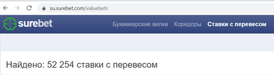 - заходим на сайт https://su.surebet.su/ и открываем раздел «Ставки с перевесом» - Выставляем в фильтрах следующие настройки: Минимальное число ставок 2 (это позволяет охватить менее популярные собития), Выбираем события в течение – 1 день (поскольку вилки как правило возникают непосредственно в день события), В фильтрах коэффициента ставим от 1 до 10 (последнее значение можно смело уменьшать до 5, чем меньше кф на событие тем меньше разница плеч), Далее выбираем букмекерские конторы на которых Вы будете вилковать (я обычно пользуюсь несколькими ЦУПИСными – иксы, фонбет, олимп, леон, лига ставок, марафон, бетбум, винлайн… на остальных ставить пре-матч не рекомендую, можете пользоваться офшорными лояльными типа пинакла и бет 365), в разделе видов спорта выбираем все кроме шахмат, а так же обращаем внимание на некоторые типы ставок в теннисе и единоборствах в силу разных правил расчета на некоторых конторах. - Нажимаем фильтровать и перед Вами появляются все ставки с завышенными коэффици