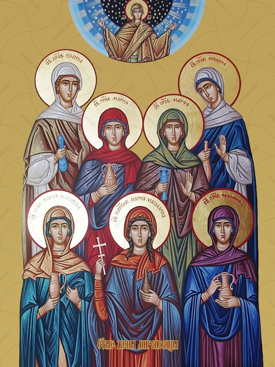 Христос воскресе! В этом 2024 году чтим память святых жен-мироносиц 19 мая. Многие из вас слышали о необычном их наименовании, но на самом деле все весьма просто: "мироносица" - буквально означает "несущая миро" (см. икону). Жены-мироно́сицы – прославленные Церковью в лике святых Мария Магдалыня, Мария Клеопова, Саломия, Иоанна, Марфа, Мария и иные: (Мф.28:1); (Мк.15:40, 16:1); (Лк.24:10); (Ин.20:1-2, 11-18). Мария Магдалыня Про остальных жен-мироносиц сохранилось не много сведений, а о Марии Магдалыне их больше всего. Доподлинно известно, что она родилась в Галилее, в городе Магдала. До встречи с Господом она вела грешную жизнь. Исус изгнал из нее семь бесов (Мк.16:9), и Мария пошла за Ним и за апостолами, чтобы быть в услужении. Мария уверовала в Христа и была ему предана до конца. Она была той женщиной, что первая понесла людям благую весть о Его Воскресении – от нее пошли в мир слова «Христос Воскресе!» Сообщая эту весть императору Тиберию, Мария принесла ему в дар яйцо. Император