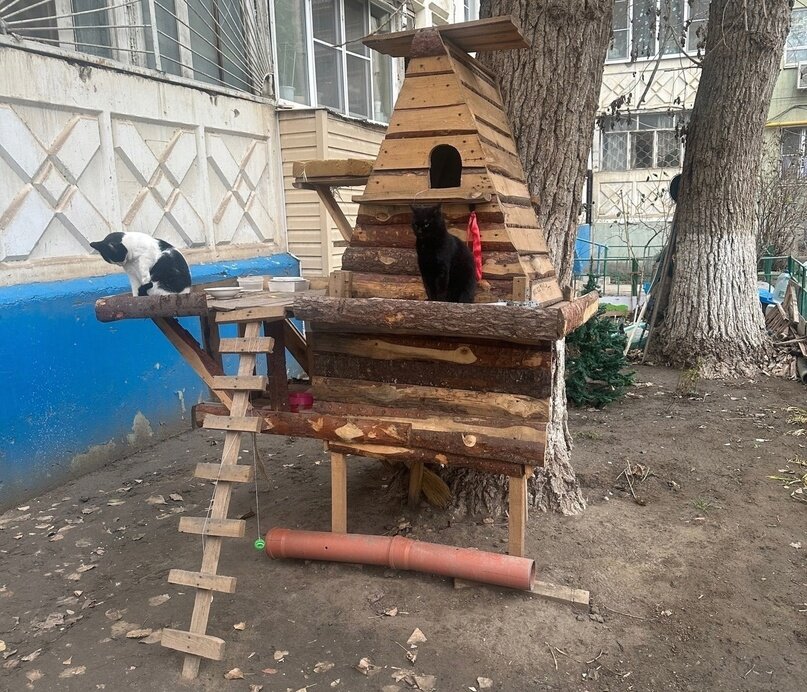 Причем еще и с лестницей, видно, чтобы собаки там не хозяйничали. Судя по всему, кошки строение заценили, и активно им пользуются. Фото разместили в паблике Астрахань онлайн.