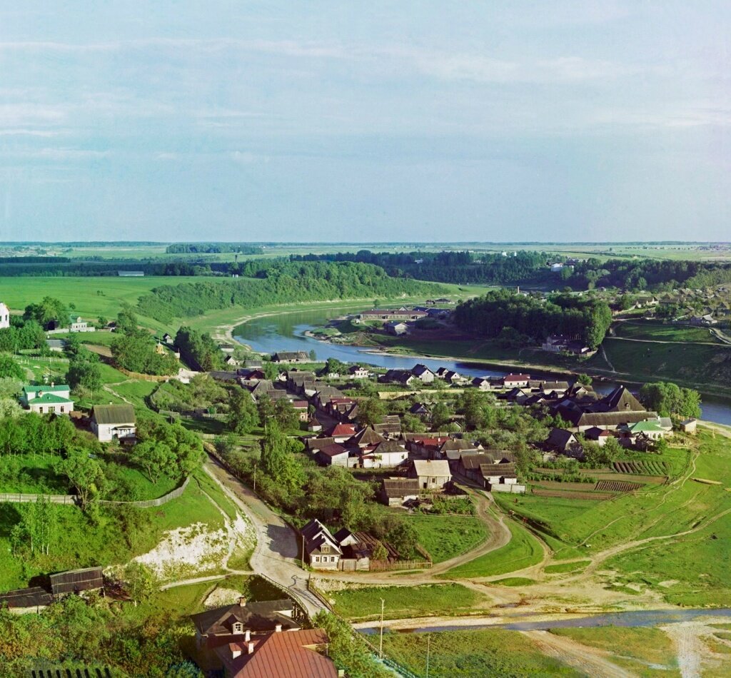 На снимках: Тетерино, 1910 год, фото Сергея Прокудина-Горского; вид на ДК, 1999 год, фото Владимира Рыбкина (увы, сохранилось только в газете).