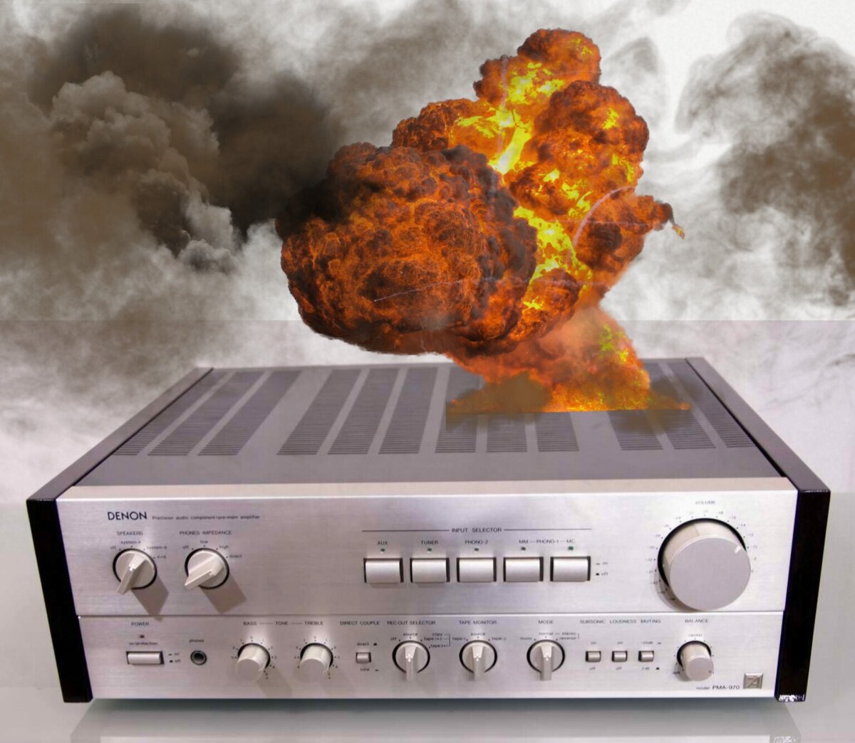 Попал ко мне очередной, заботливо завёрнутый в шерстяное одеяло "увесилитель" под названием DENON PMA-970. Увесиляет музыку аж в чистом классе А. Ещё в машине, когда вез его домой почувствовал неладное, это неладное пахло знакомой гарью гетинакса. Ну впрочем подобные ретро усилители почти все так пахнут, но этот как то по особенному, вонял он скорее пожаром, а не перегретым гетинаксом. Открыв окно в машине, чтоб проверить, доехал до дома. Весит громадина конечно не мало 23 кг. Развернув одеяло, увидел лакированную деревяшку (по бокам усилителя прикручены декоративные деревяшки) подумал, что привез какую-то мебель, ан нет, крутилки и кнопочки явно указывали, что это именно усилитель. На "морде увесилителя" гордо написано "class A". А запах все усиливался и усиливался...