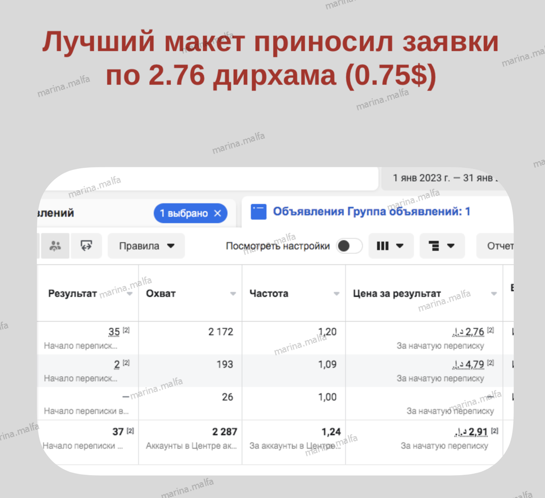 За 23 дня получено: 98 заявок на маникюр по 4,5дирхама (1.2$) и 217 подписчиков по 2дирхама (0.54$). Дано: