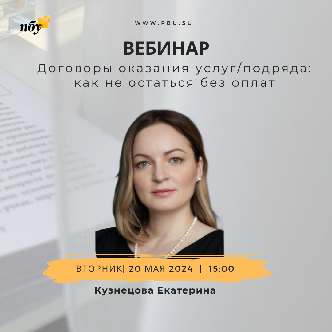 🎙 Тема вебинара: "Договоры оказания услуг/подряда: как не остаться без оплат за оказанную услугу/выполненные работы"