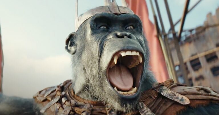 В сериале «Безумцы» есть сцена, где главный герой Дон Дрейпер в 1968-м смотрит в кинотеатре «Планету обезьян». Фильм закончился, а он не уходит из зала, продолжая переваривать финал, где оказывается, что действие все это время происходило не на какой-то отдаленной планете, а на Земле через несколько веков после почти полного исчезновения людей. Сюжетный спойлер с торчащей из пляжного песка статуей Свободы, прозвучавший еще значительнее из-за отсутствия в то время интернета — один из самых важных киномоментов эпохи. И интересно, что за 56 лет, прошедших с премьеры «Планеты обезьян», франшиза состарилась вполне достойно. Плюсы: — «Новое царство» (в международном прокате с 10 мая, в России картину можно посмотреть только онлайн у пиратов) — десятый фильм в кинофраншизе «Планета обезьян», и, учитывая, сколько десятилетий она длится, это не то чтобы большая цифра. Первые пять фильмов вышли на рубеже 1960–1970-х, потом был долгий перерыв, пока в 2001-м Тим Бертон не решил снять свою версию,