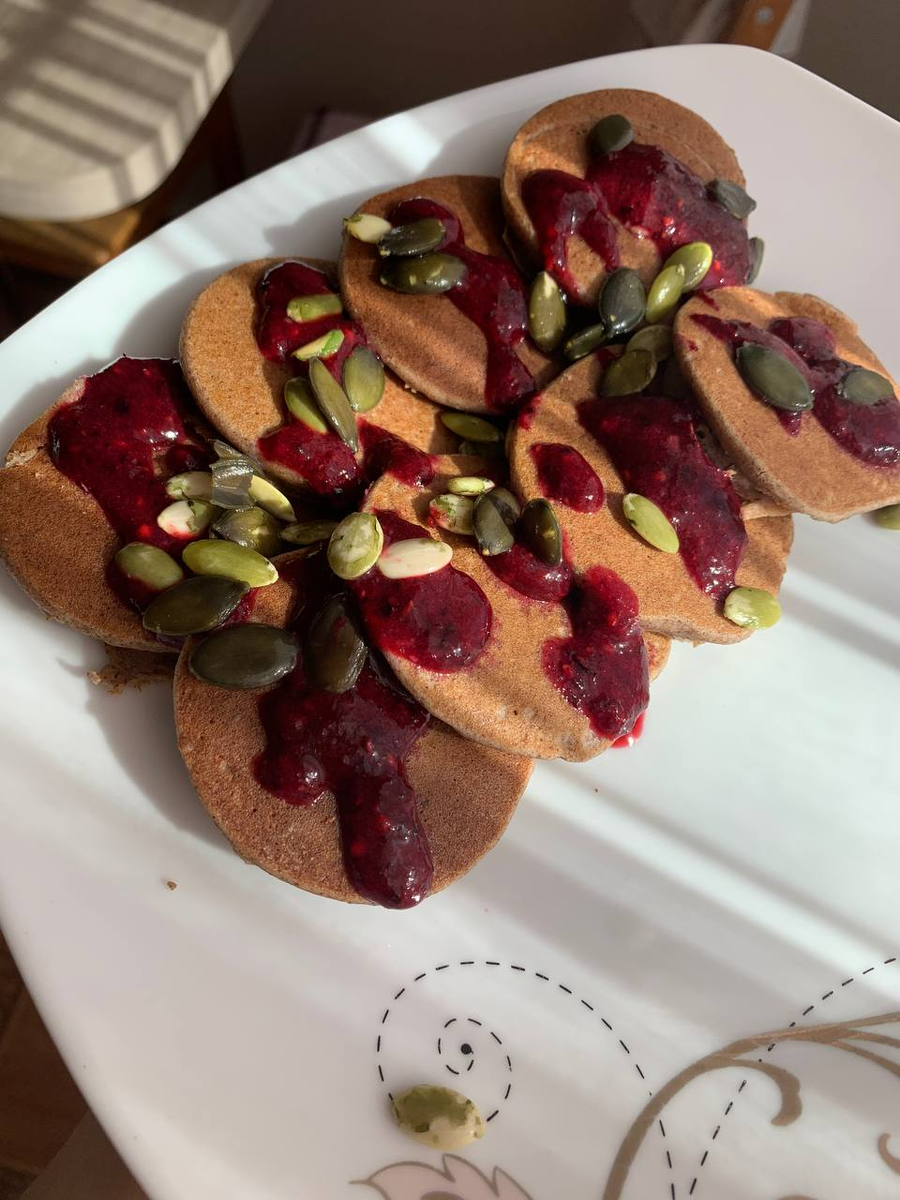 Рисово-миндальные панкейки с ягодным топпингом. БЕЗ САХАРА, МОЛОЧКИ И ГЛЮТЕНА.