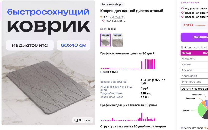 В мире интернет-торговли каждый продукт имеет шанс стать звездой, если подход к его продвижению правильный. Примером тому служит диатомитовый коврик для ванны, который за короткий срок собрал впечатляющие 1,9 миллиона просмотров и привлек 35 000 потенциальных покупателей. На примере этого кейса мы разберем, как стратегия внешнего продвижения сыграла ключевую роль в успехе продаж на маркетплейсе. Кейс 261: Маркетинговая Стратегия, Которая Работает Основой для продвижения коврика послужило создание видеоролика в формате Reels, который был опубликован на платформе Instagram* (запрещенная в РФ социальная сеть). Благодаря продуманному подходу и уникальным характеристикам продукта, ролик быстро набрал популярность и за три недели принес 280 заказов с общей выручкой 646 000 рублей. Рассказываем, благодаря каким факторам удалось достичь весомых продаж. Если хотите таких же результатов — оставьте заявку Уникальные Продуктовые Характеристики Диатомитовый коврик для ванны отличается от обычных ко