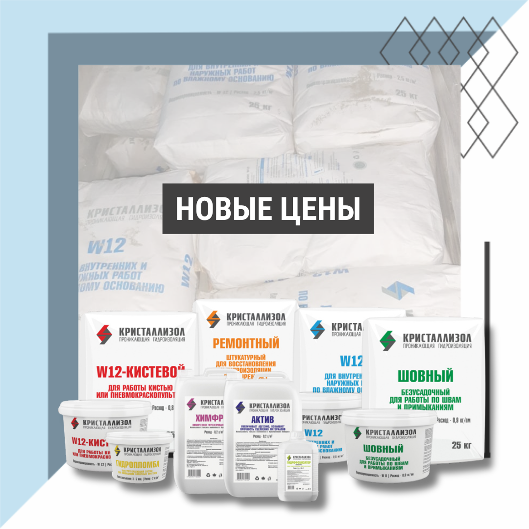 С 16 мая 2024 года наша компания 🆕 обновила цены на гидроизоляцию Кристаллизол. Актуальные цены смотрите на сайте skgsk.ru.