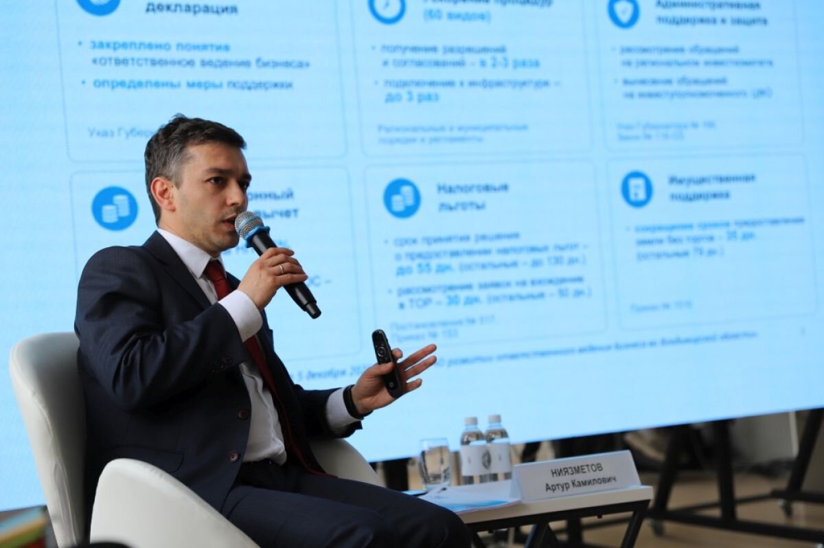 разговор с орловскими предпринимателями. Причем общение прошло в Орле. Как рассказали в пресс-службе областного правительства, Артур Ниязметов акцентировал внимание на поддержке российского бизнеса ЭКГ-рейтинга. - ЭКГ-рейтинг – это «Экология, кадры, государство». Рейтинг учитывает национальные ценности и приоритеты, при этом соблюдается баланс между интересами бизнеса, государства и общества. Мы смотрим на технологии, которые применяют компании с точки зрения заботы об окружающей среде, на уровень зарплаты в среднем по экономике, как они вкладываются в национальные цели развития. Это во многом показатель для клиентов и потенциальных работников, - цитирует пресс-служба обладминистрации замполпреда. Побывал на мероприятии и заместитель губернатора Орловской области по планированию, экономике и финансам Вадим Тарасов. О впечатлениях орловских бизнесменов от такого мероприятия в пресс-служба губернатора Клычкова не сообщили. Справочно: Артур Ниязметов занимает пост замполпреда президент