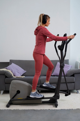 В этом тренажере есть поворотная рукоятка, за счет чего вы можете шагать, одновременно поворачивая корпус. Это позволяет прорабатывать не только нижнюю часть, то также спину, живот и талию. Кроме этого, постоянная перемена центра тяжести улучшает координацию.