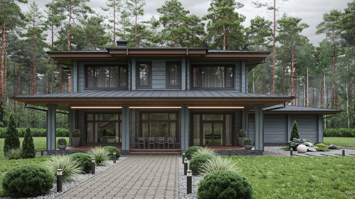 Наш новый проект дома из клееного бруса премиум в стиле Райта, в котором реализованы современное архитектурные решения и высокое качество материалов.