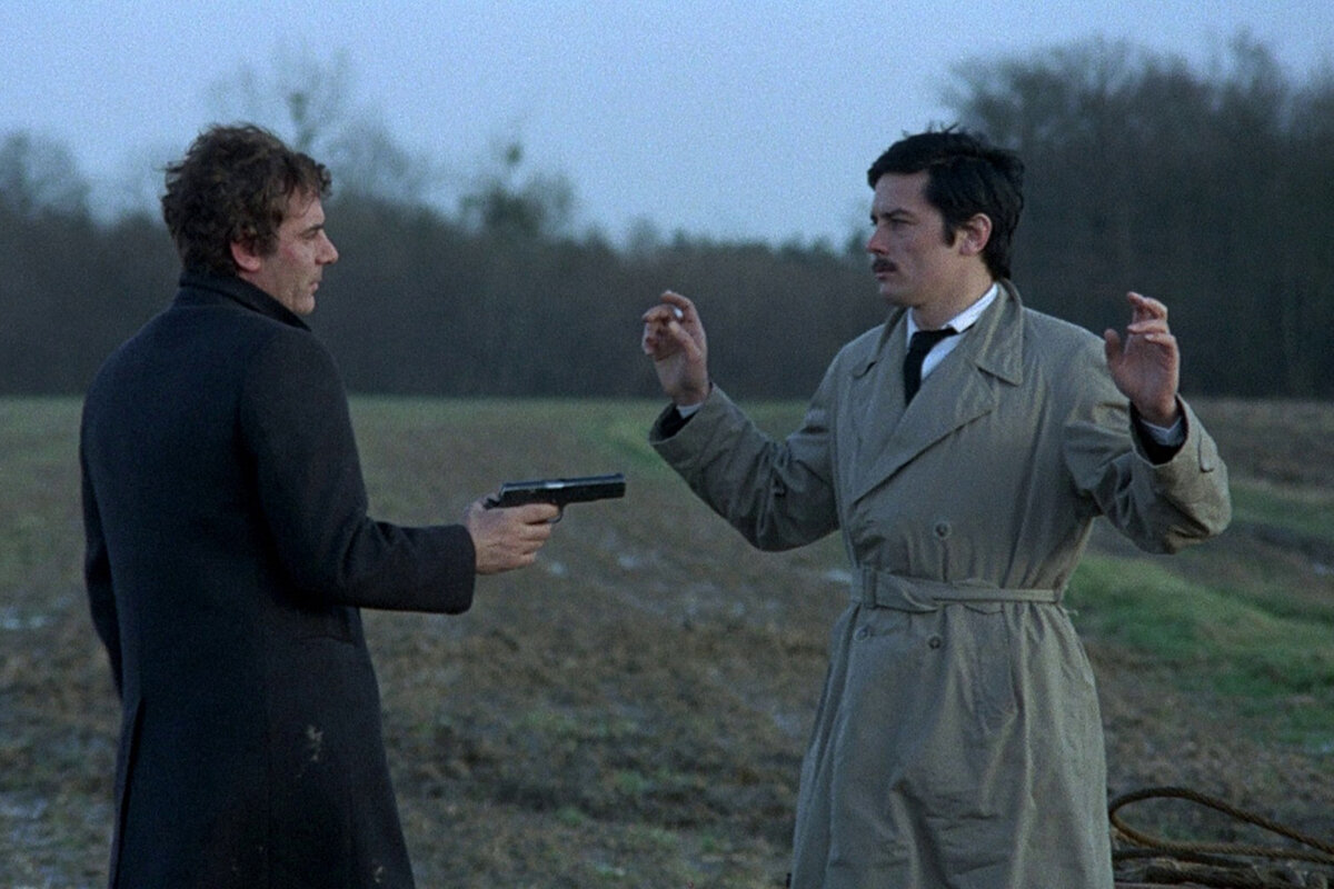 Французский криминал с Аленом Делоном – что может быть лучше? Только если это фильм Жана-Пьера Мельвиля. «Красный круг» 1970 года совсем не похож на «Самурая». Нет, стиль тут тоже чувствуется, но во главе угла не он. Бесспорно, с учетом минимизации диалогов тут картинка и актерская игра значат больше, чем слова, но это не так идеальная картинка, что была в предыдущем фильме. История о том, как судьба сводит освободившегося из тюрьмы преступника, находящегося в бегах подозреваемого и сильно пьющего бывшего полицейского в одном ограблении, и что из этого получается, вышла безумно красивой, но не изысканной красотой, а красотой привычного. Пейзажи, машины, помещения, костюмы – тут все предельно обыкновенное, но в сумме становится конфеткой. Монтаж и операторская работа, как и длинные сцены без диалогов и скоротечные перестрелки без красивых планов, отсылают то к французской новой волне, то к итальянским вестернам. Образы героев – к уже сформировавшемуся жанру классического французского де