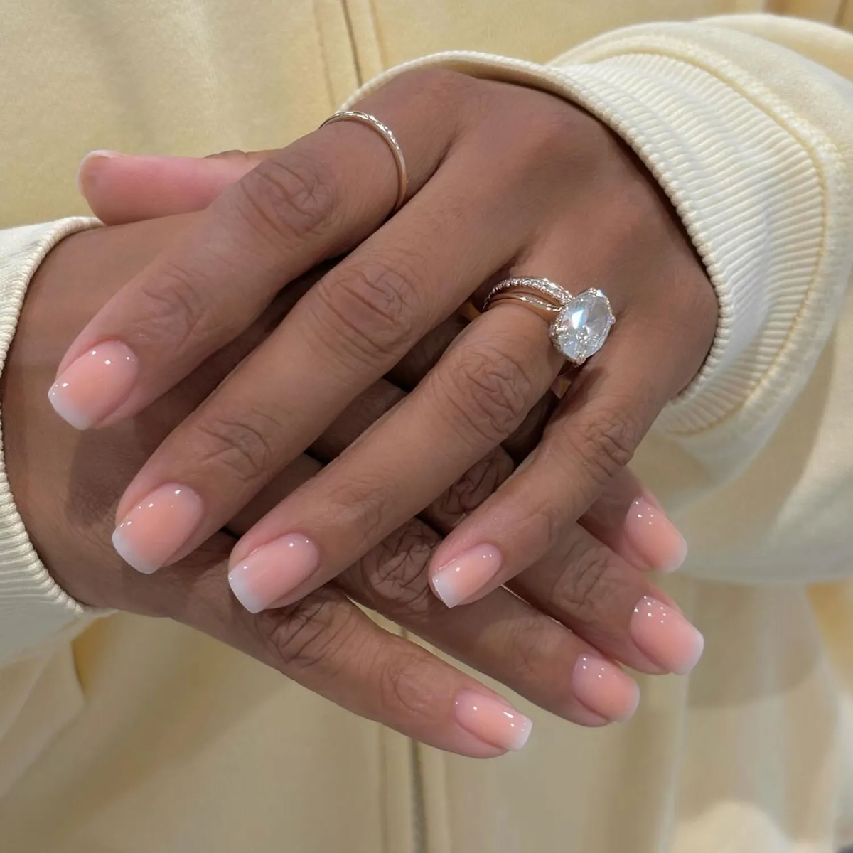 «Мне всегда нравился маникюр омбре , но иногда более традиционный стиль не нравится моим клиентам, поэтому я создала более утонченную и привлекательную версию: ногти омбре», — говорит Уэстморленд. «Я взяла лучшее от обоих маникюров и соединила их вместе». По словам Уэстморленд, гибридный маникюр выглядит очень эффектно. "Он такой сияющий и блестящий. Благодаря сочетанию цветов он ловит свет, создавая суперглянцевое отражение, что очень нравится моим клиентам".