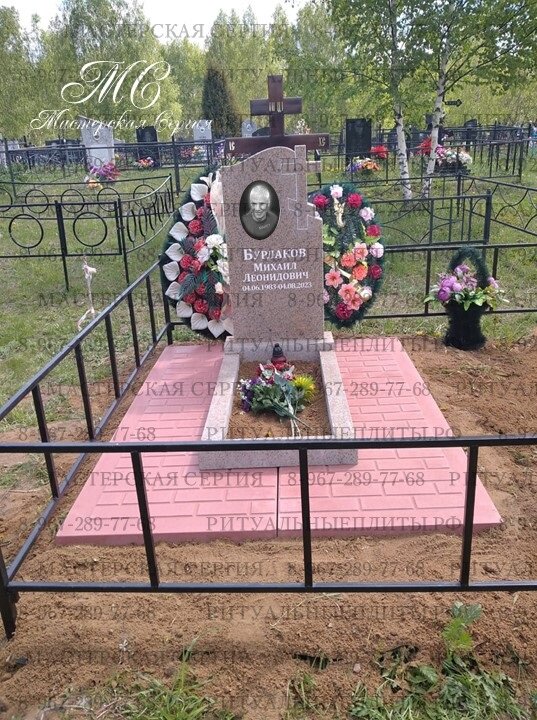 Установка гранитного памятника на фундамент ритуальные плиты розового цвета.