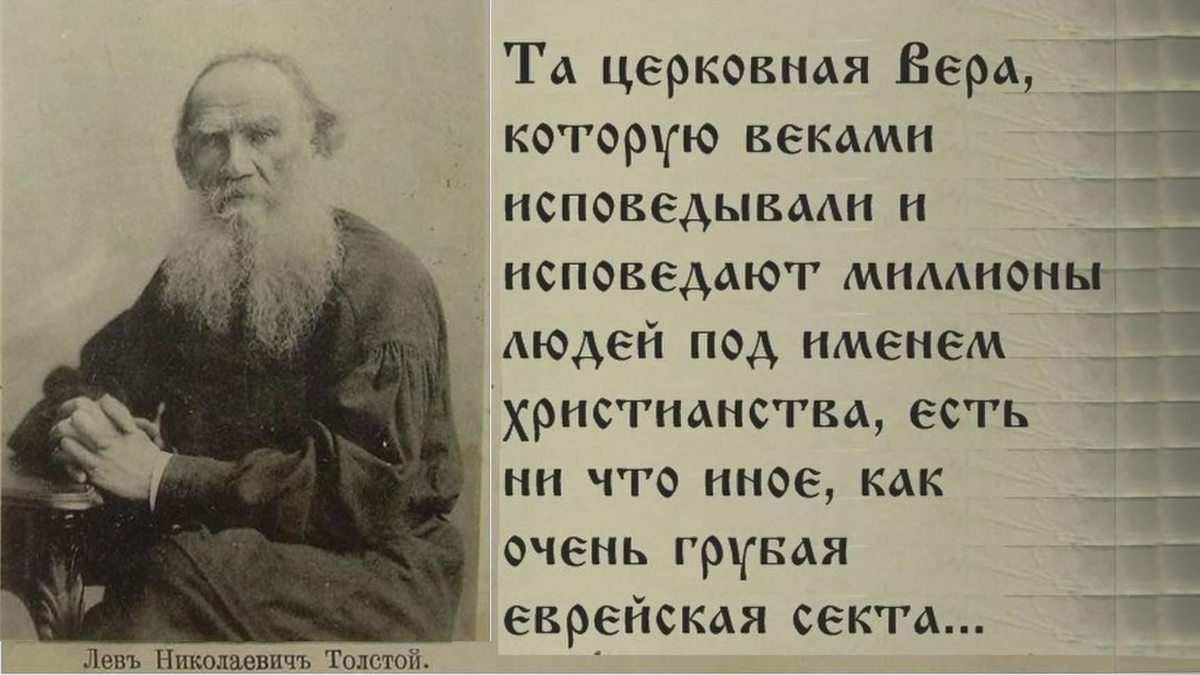 В ответ на определение Священного Синода об отлучении его от церкви Лев Толстой опубликовал свое послание, в котором писал: «То, что я отрекся от Церкви, называющей себя Православной, это совершенно справедливо. …И я убедился, что учение Церкви есть теоретически коварная и вредная ложь, практически же – собрание самых грубых суеверий и колдовства, скрывающего совершенно весь смысл христианского учения. …То, что я отвергаю непонятную Троицу и басню о падении первого человека, историю о Боге, родившемся от Девы, искупляющем род человеческий, то это совершенно справедливо».
